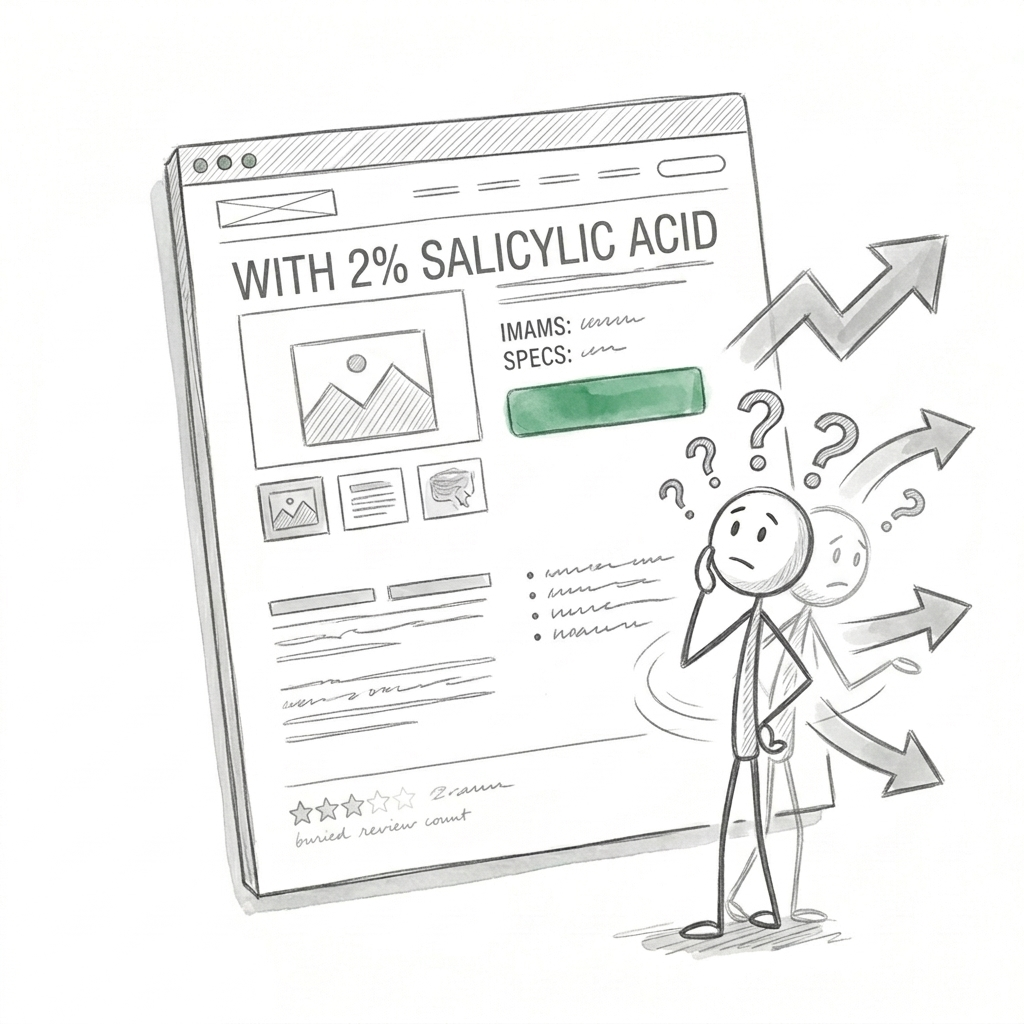 No free shipping threshold or delivery timeline on product pages. Most common drop-off: right before add-to-cart.